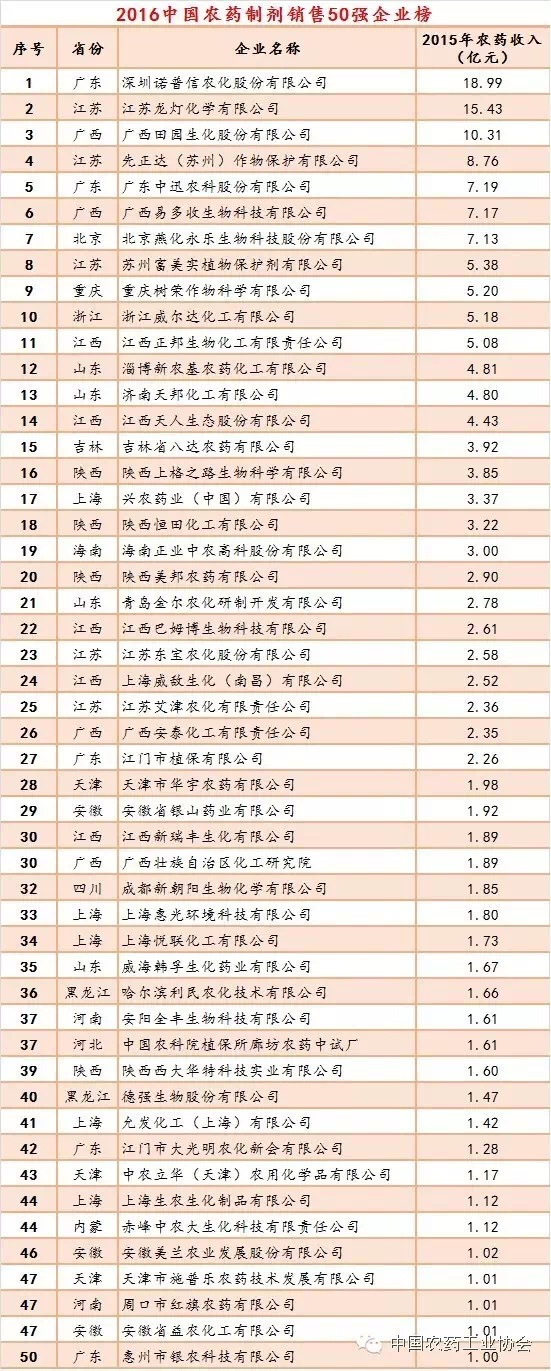 陕西上格之路生物科学有限公司荣登2016中国农药行业制剂销售50强榜